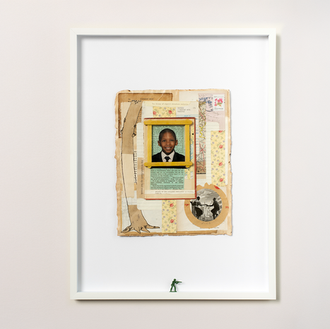 2024, mixed media, cyanotype on Stonehenge paper, stained glass window frame - 34.5"w x 34.5"h